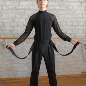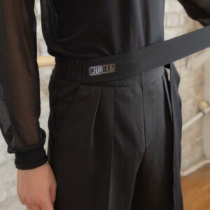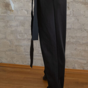 Mustat treenihousut solmittavalla vyöllä. Klassisen malliset housut taskuilla joustavasta lycra-kankaasta. Koot S, M, L ja LL (L pidemmillä lahkeilla). Tilauksella saa myös muita kokoja.