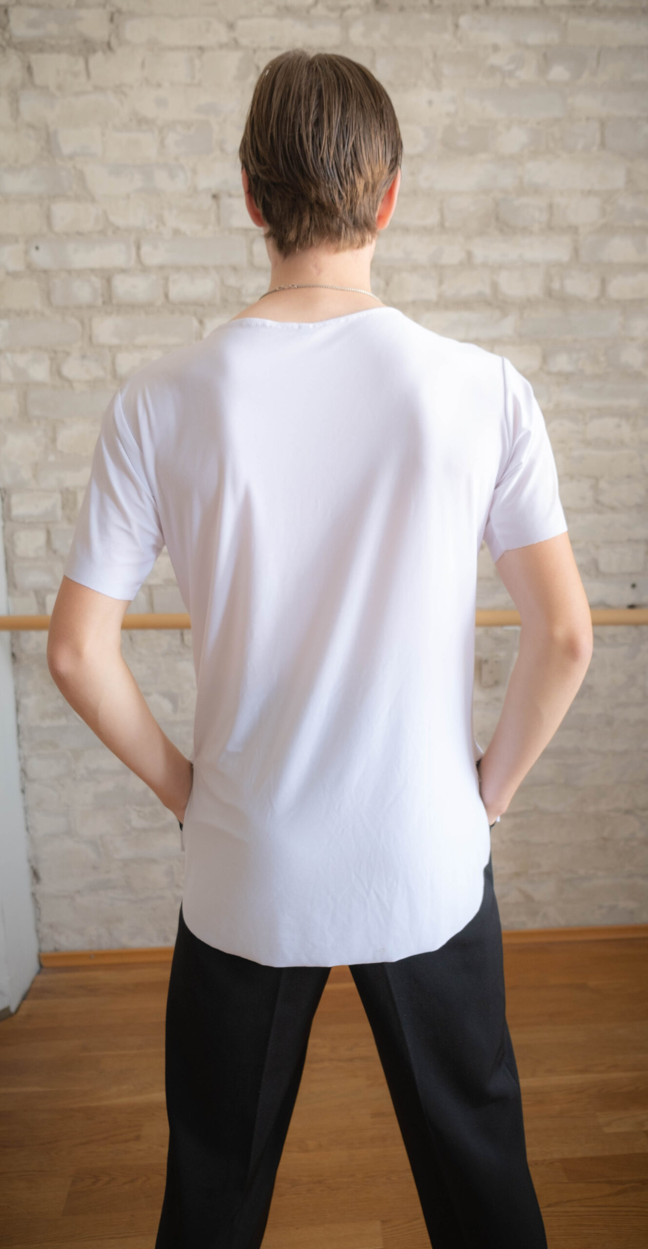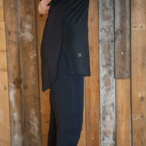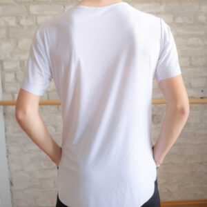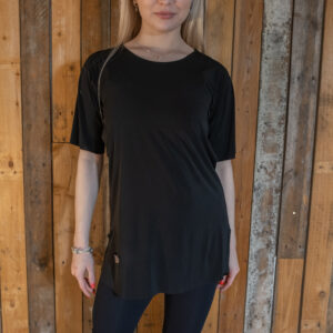 Lyhythihainen treenipaita U-mallisella kaula-aukolla kevyestä joustavasta crepe-kankaasta. Takaa vähän pidempi kuin edestä, sivuissa halkiot. Koot S, M ja L. Tilauksella saa myös muita kokoja.