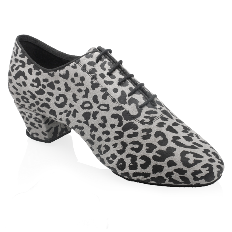 Thunder; Grey/Black Leopard Print Leather Latin dance shoe.