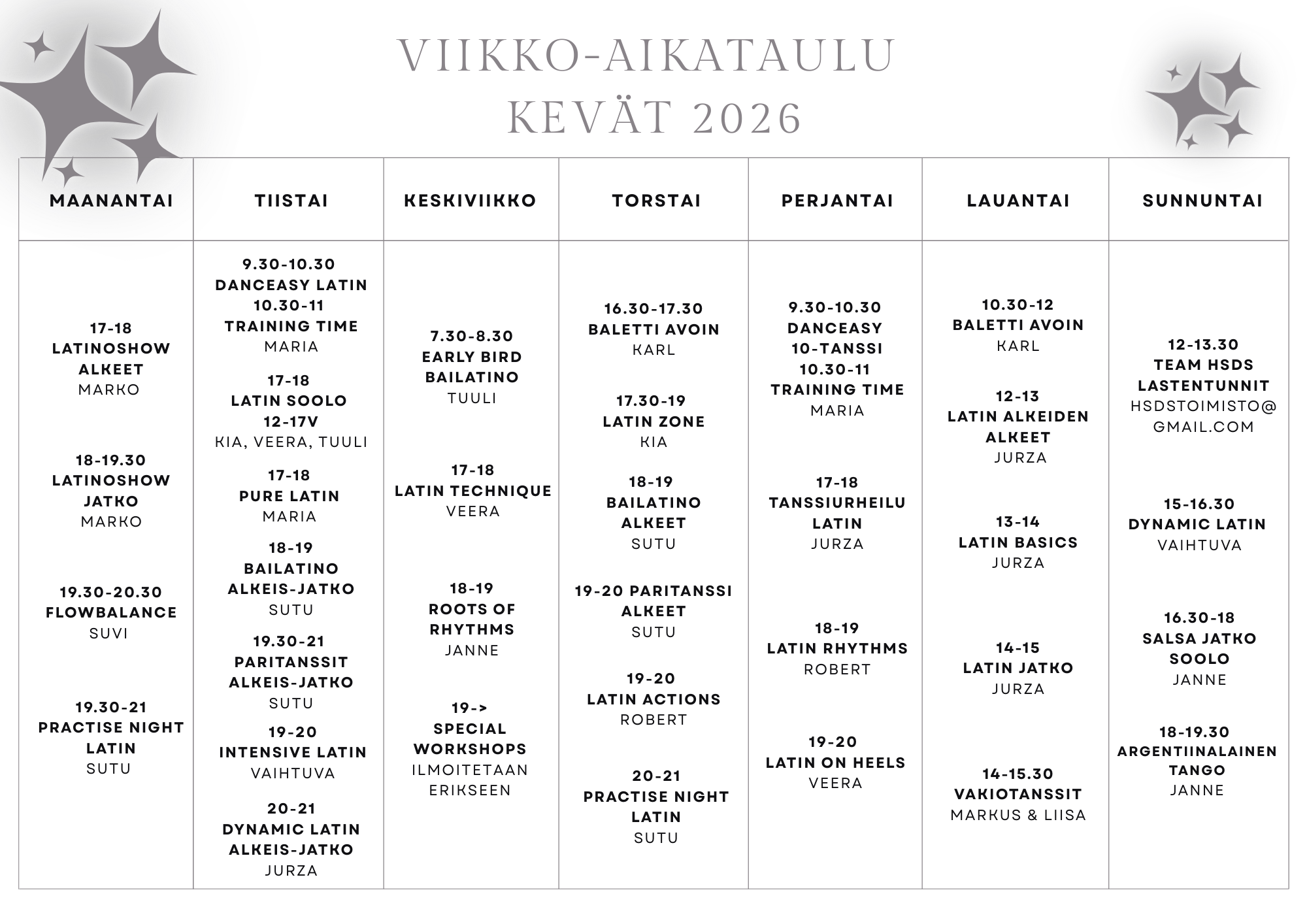 Viikko aikataulu kevät 2026